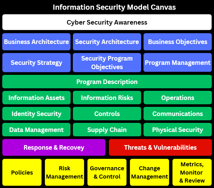 The primary parts of the business’s cyber security focus: the technical, administrative, and physical controls and the governance your business needs to develop, communicate, and keep the program effective. The policies, standards, and procedures that are the program.